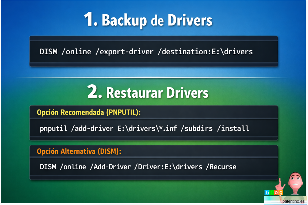 La buena noticia es que Windows incluye herramientas oficiales para exportar y restaurar drivers de forma limpia, rápida y profesional. Sin programas de terceros. Sin riesgos.