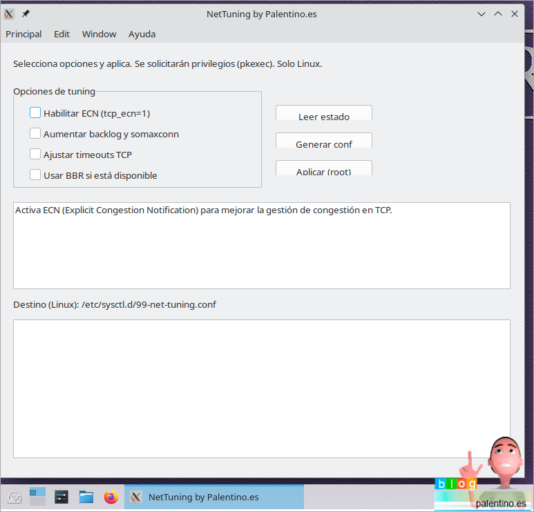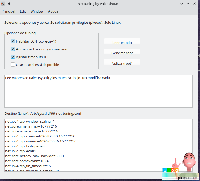 - Automatiza lo complejo – Lo que antes requería editar /etc/sysctl.d/*.conf y aplicar manualmente sysctl –system, ahora se hace con un clic.
