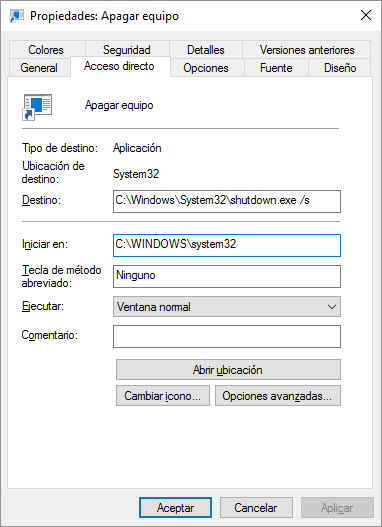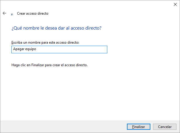 Recuerda que puedes crear otro acceso directo con la orden Abortar apagado, si se han establecido segundos para su apagado.