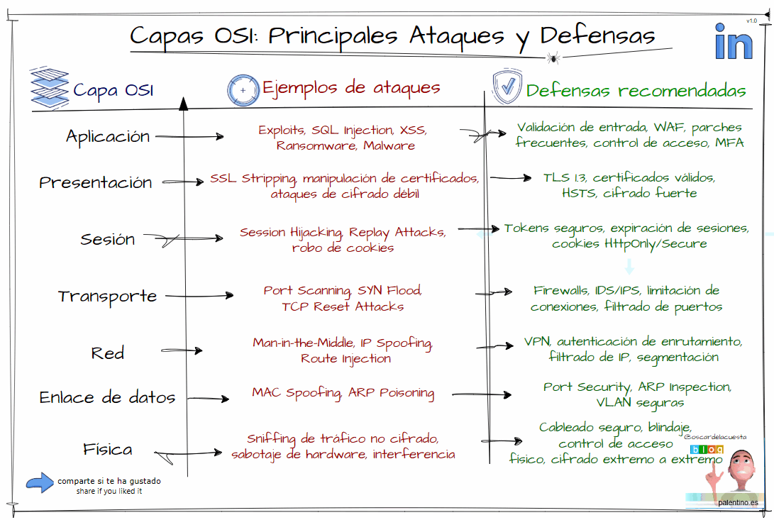 Capas OSI: Principales Ataques y Defensas