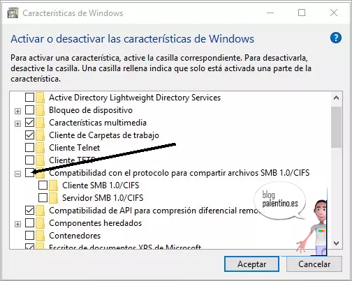 - Cliente SMB 1.0/CIFS: En versiones más recientes de Windows, el soporte para el protocolo SMB 1.0 está deshabilitado por defecto debido a preocupaciones de seguridad. Si tu servidor Samba está utilizando una versión antigua que requiere SMB 1.0, tendrás que habilitar este cliente desde el Panel de Control bajo ‘Programas y Características’ > ‘Activar o desactivar características de Windows’ > ‘Soporte para compartir archivos SMB 1.0/CIFS’.