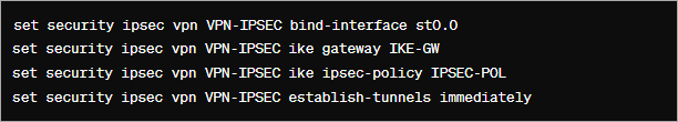 Y estableces la VPN IPsec, vinculándola al gateway IKE y a la política de IPsec: