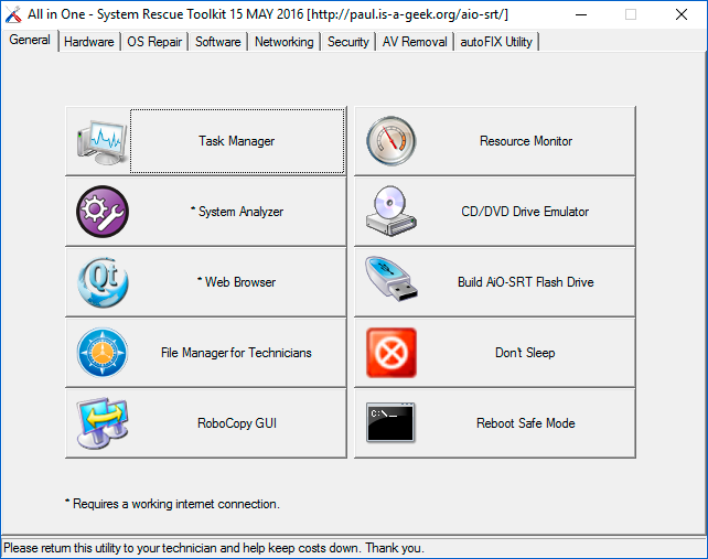 La utilidad All-in-one System Rescue Toolkit es un software para recuperar sistemas, que proporciona diversas herramientas para recuperar información, reparar discos, revisar el sistema de arranque, etc.