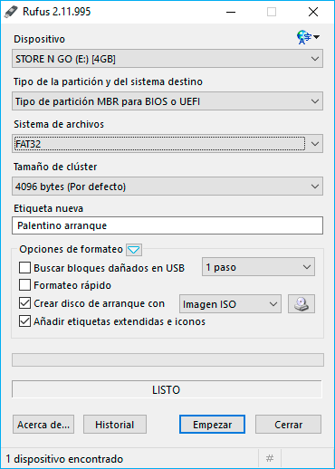- Marcando la opción disco de arranque, pulsar empezar.