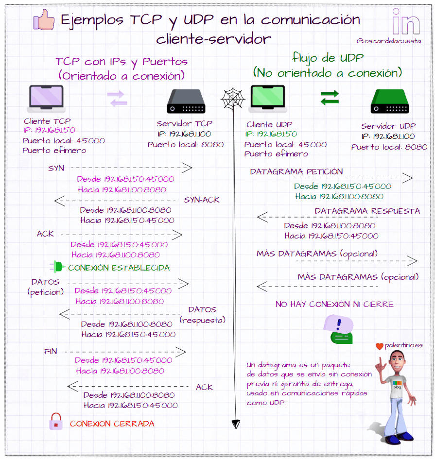 Home Sin categoría Diagrama con ejemplos TCP y UDP en la comunicación cliente-servidor IP