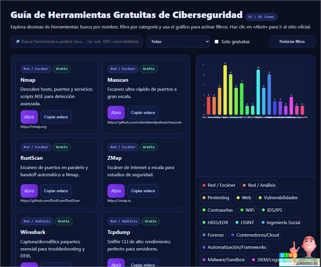 Por eso he creado una guía interactiva con más de 70 herramientas de ciberseguridad, tanto gratuitas como profesionales, para que cualquier persona —desde estudiantes hasta expertos— pueda explorar, aprender y fortalecer su entorno digital.