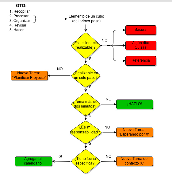 La dinámica de GTD se basa en hacer fácil el almacenamiento, seguimiento y revisión de toda la información relacionada con las cosas que necesitas hacer.