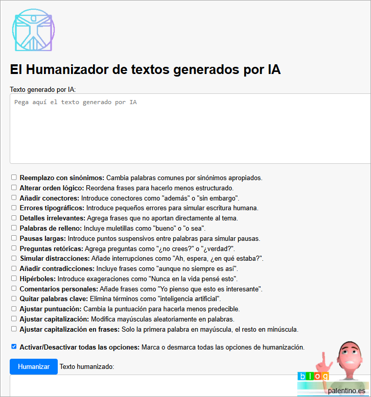 He creado este humanizador de texto para convertir textos generados por IA en textos con carácter humano. Es una versión beta funcional.