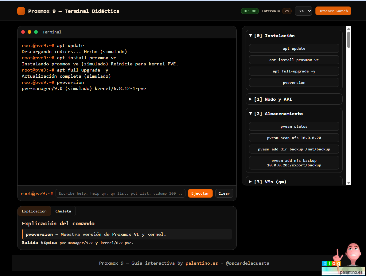🧠 He creado una terminal virtual interactiva que explica paso a paso cómo trabajar con Proxmox 9, una potente plataforma de virtualización.