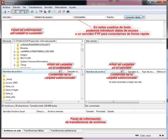 Para ello usaremos un programa libre (cliente FTP) llamado Filezilla. Existen más, pero este es el mas destacado, con disponibilidad de versiones para Windows, Mac y Linux. Me gustaría aclarar que FTP es distinto concepto que Filezilla. Uno es el protocolo, y lo otro, es la aplicación que lo emplea. Existiendo muchas mas.